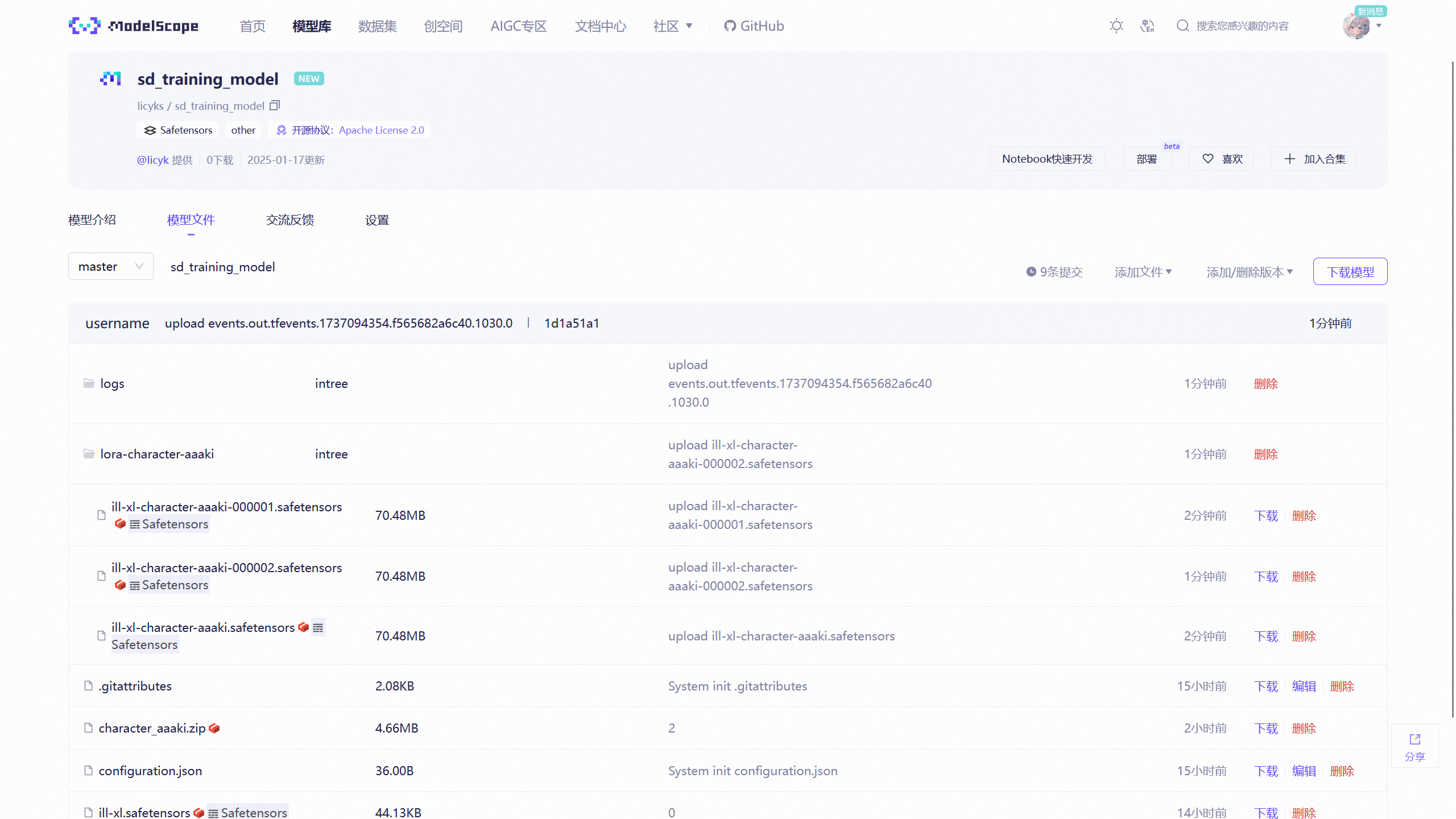 刚刚在 ModelScope 上创建了一个模型仓库,并将ill-xl.safetensors上传到该仓库中。